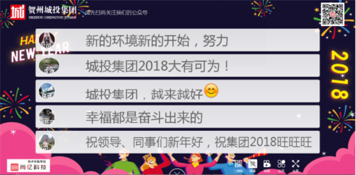 在“賀州城投集團”微信公眾號啟動儀式,現場舉行了“掃碼關注發(fā)感言”活動。全體員工同時拿出手機,現場參與活動,紛紛表達了對2018年新年及城投集團的美好祝愿,活動氣氛熱烈,進一步增強了員工的凝聚力和向心力。城投集團微信公眾號的開通是繼網站上線運行之后的又一宣傳工作的成果。