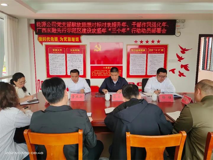 能源公司召開本公司“三個年”動員部署會,動員公司全體干部員工上下要認清形勢、高位對標、全面對表、注重實干實效,聚焦主責(zé)主業(yè),善于抓落實,全力以赴加快推動各綜合能源站項目落地,全力推動能源板塊業(yè)務(wù)發(fā)展邁上新臺階,為集團公司高質(zhì)量發(fā)展和綠色低碳轉(zhuǎn)型貢獻能源力量!